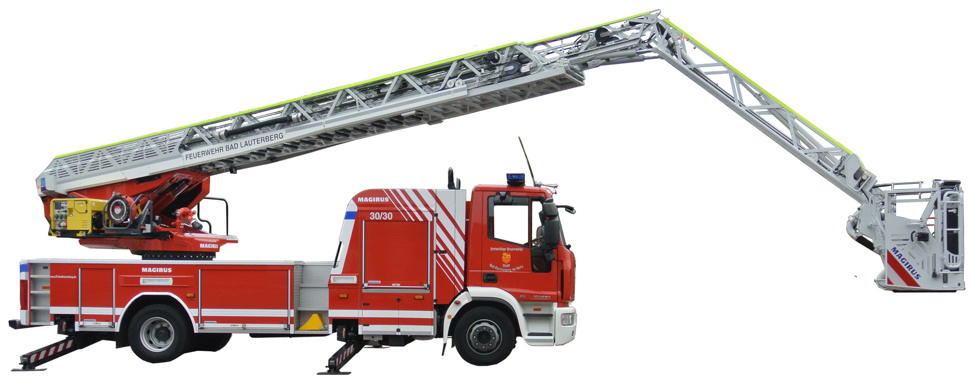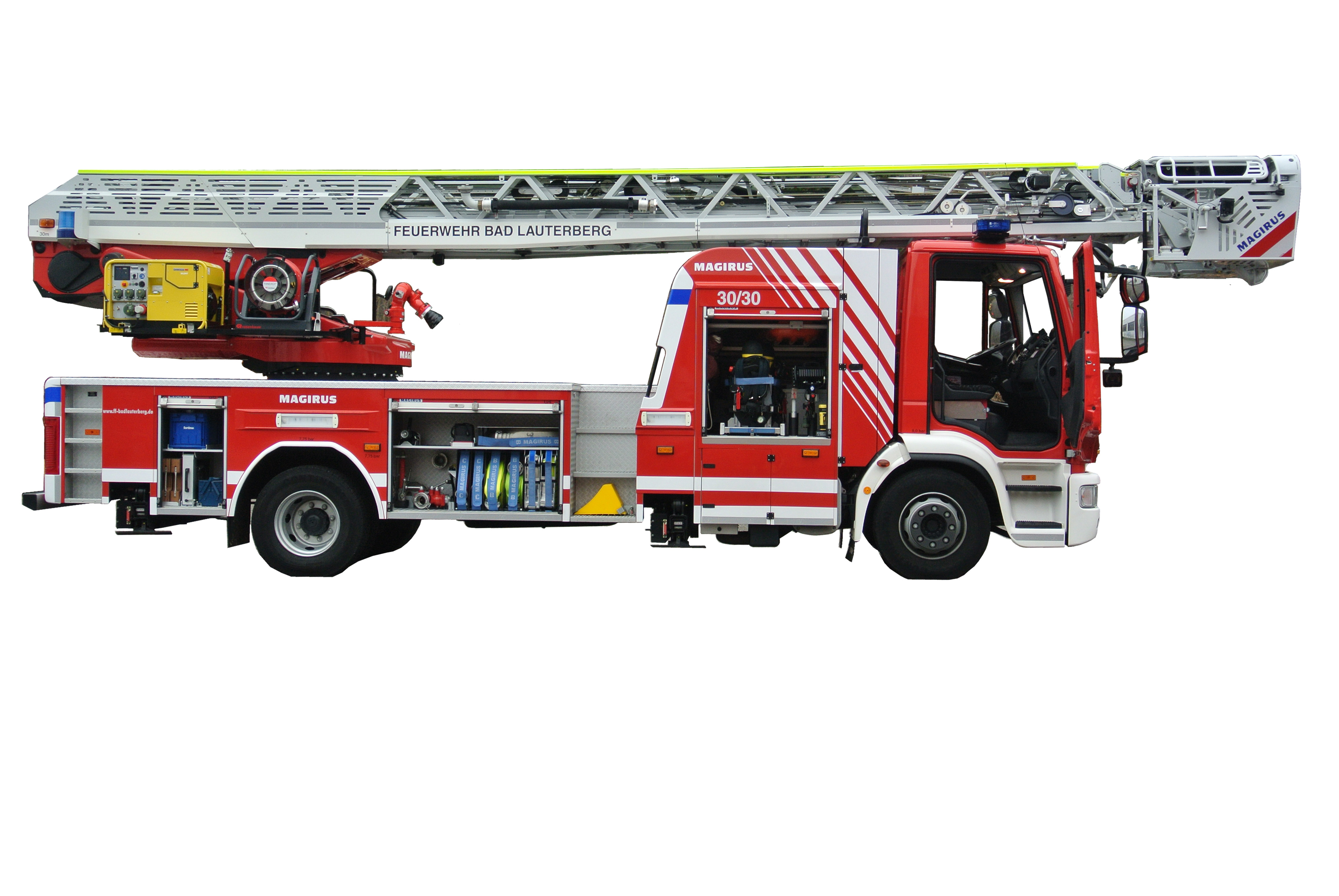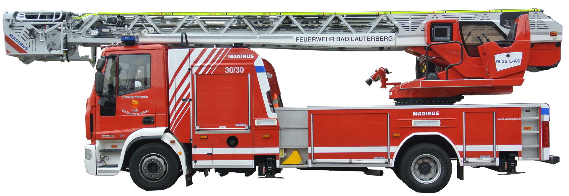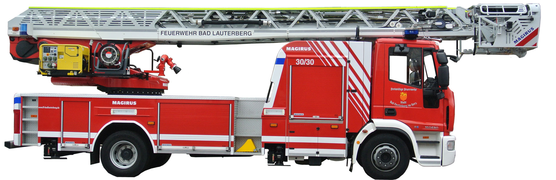 Um in allen Einsatzfeldern sinnvoll genutzt zu werden, verfügt die DLA(K) 23/12 der Feuerwehr Bad Lauterberg über umfangreiches Zubehör und einen um 75o Abwinkelbaren Gelenkarm im obersten Leiterteil.