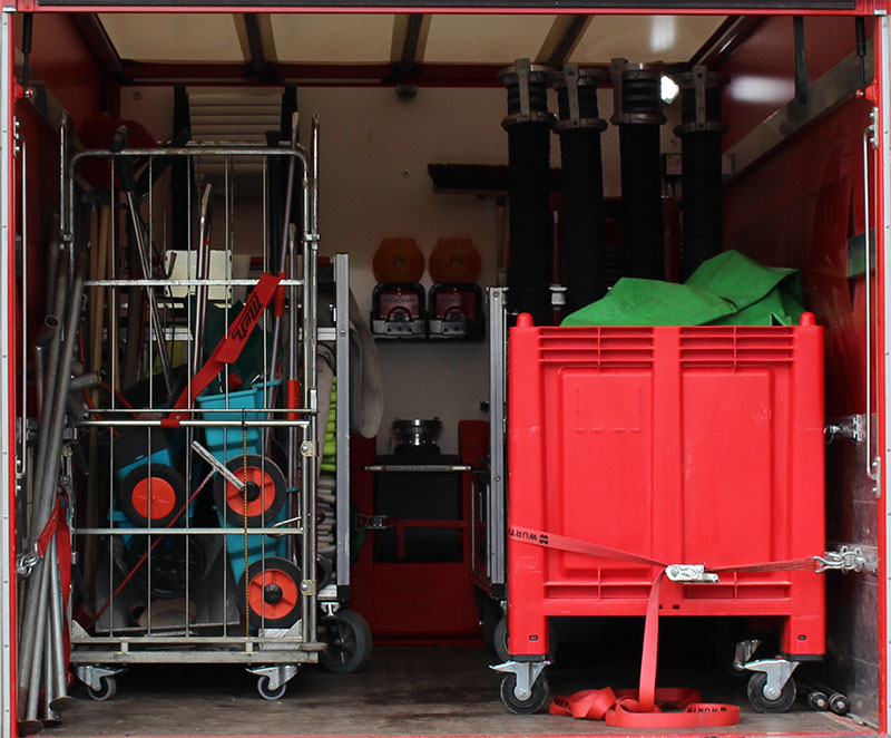 Der Gerätewagen Logistk ist u.a. durch seinen für den Transport von Rollcontainern basierenden Ausbau multifunktionell einsetzbar.